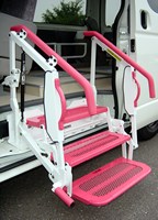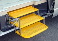 ● ロックを解除し手すりを展開するだけで3段ステップになります。左右手すり付きです。